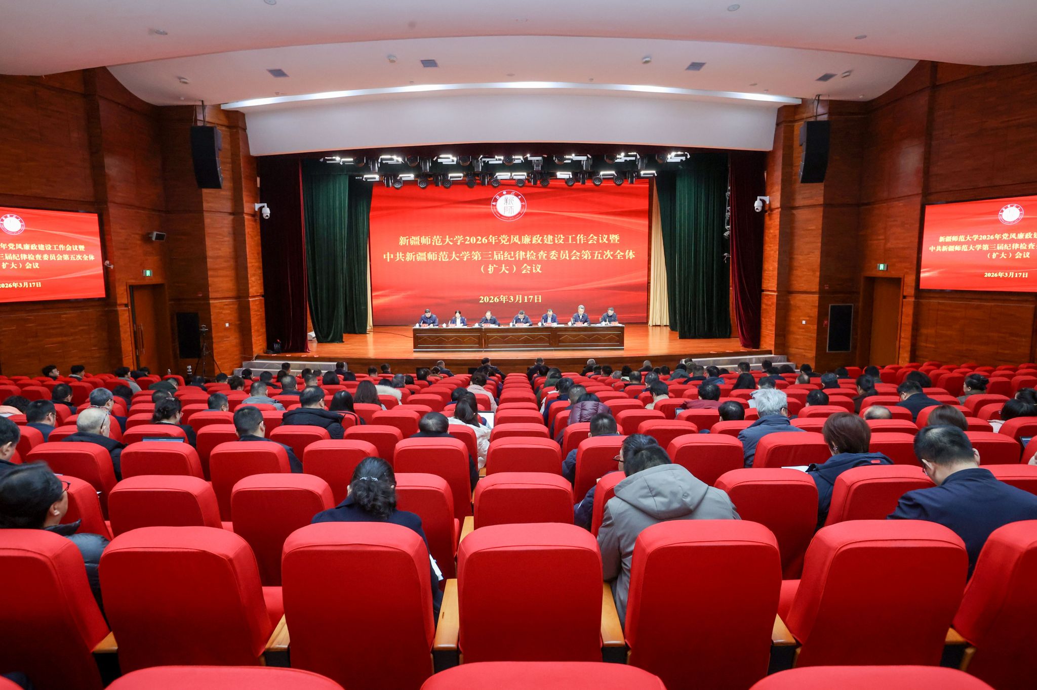 3月17日下午,新疆师范大学2026年党风廉政建设工作会议暨中共新疆师范大学第三届纪律检查委员会第五次全体(扩大)会议在温泉校区昆仑讲堂召开。校党委书记蒋海军参加会议并讲话,校党委副书记、校长艾尼娃尔·艾克木主持会议。
